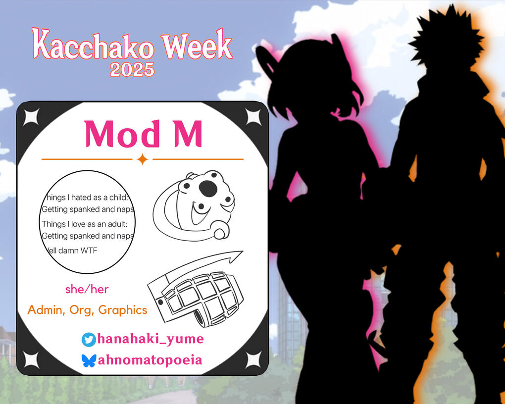 Kacchako Week is an annual Event Week that has been feeding and uplifting the Kacchako fandom since 2018 where it originated on Tumblr as Kacchako Bittersweet Week.You can see previous mods and prompts here.